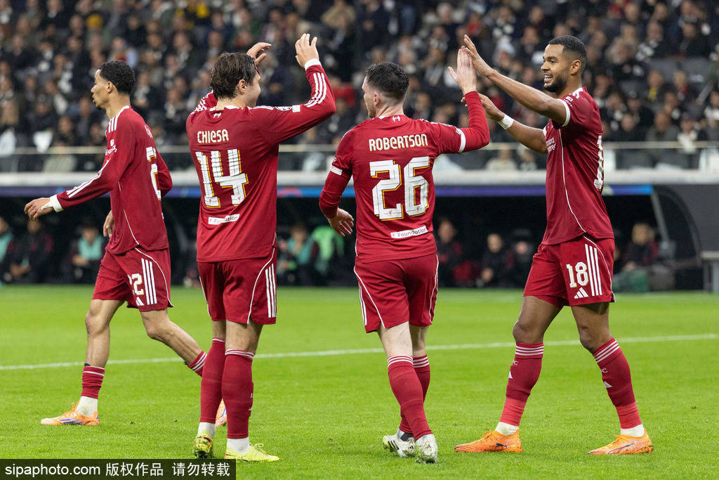 第26分钟,维尔茨前场突破被断球,格策反击中分球右路,克里斯滕森小角度劲射,皮球击中远端立柱弹入球网,法兰克福1-0利物浦。第35分钟,罗伯逊后场直塞发动反击,埃基蒂克单刀突入禁区低射攻破旧主球门,法兰克福1-1利物浦。